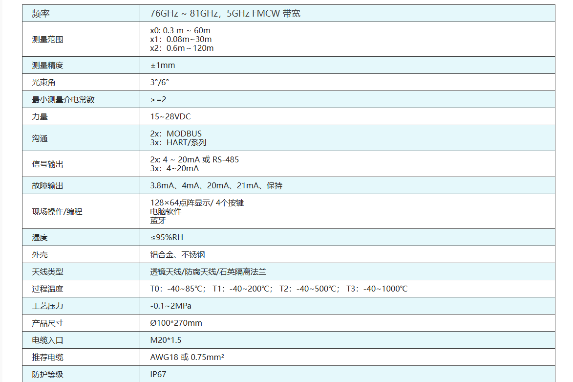 (5) 波束角可达3°,能量更集中,有效避免假回波干扰;