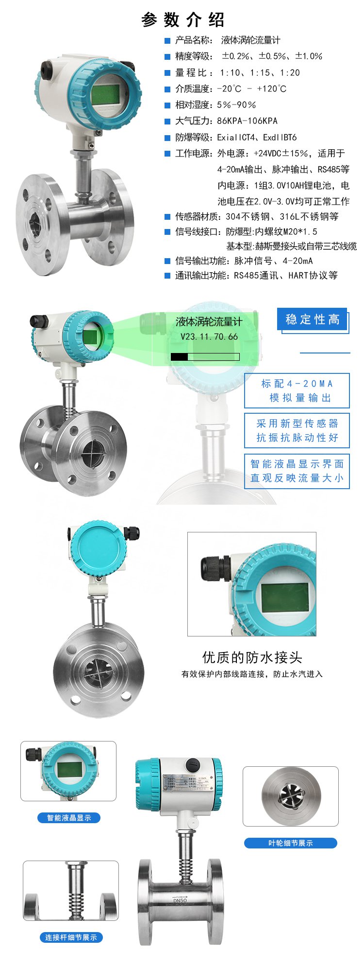 输出脉冲频率信号,适于总量计量及与计算机连接,无零点漂移,抗干扰能力强;